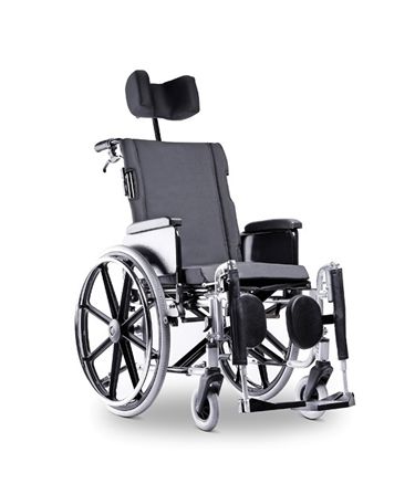 Apoio de cabeça regulável em altura, com espuma de alta densidade; sistema protetor lateral de roupas incorporado aos apoios de braços; rodas dianteiras de “6” maciças e com garfo de aço carbono; rodas traseiras de “24” infladas e com raias;rodas de sistema anti tombo; protetor de raios nas rodas traseiras; sistema de desmontagem rápida quick release nas quatro rodas; freios bilaterais; regulagem de tilt; peso da cadeira: 21kg; capacidade: 120 kg.