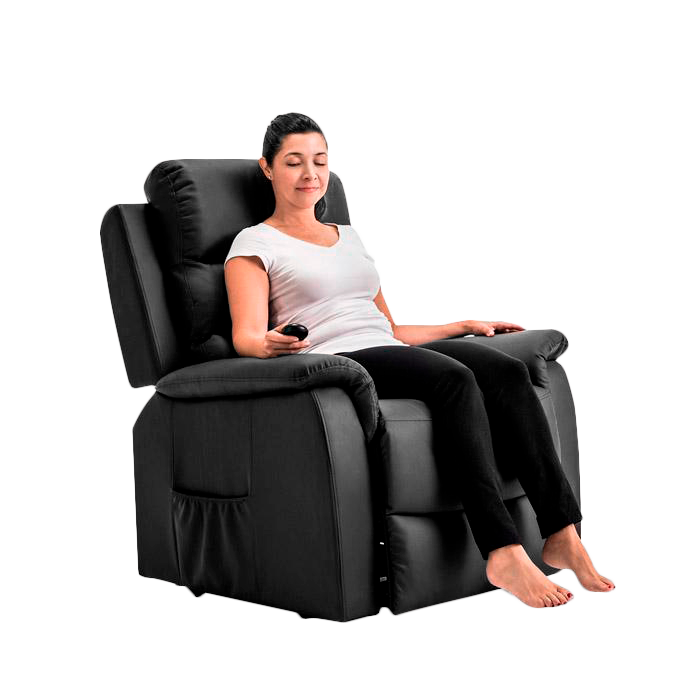 Massagem vibratória em oito zonas estratégicas + aquecimento por zonas para conforto extra e alívio de tensões musculares.